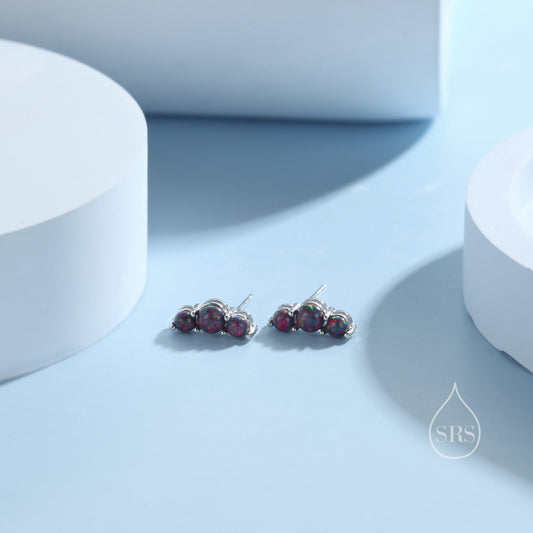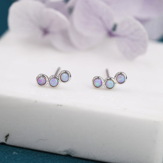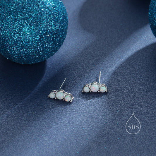 Tiny White Opal Trio Stud Earrings in Sterling Silver, Three Opal Earrings, Opal Stud, Small Opal Earrings