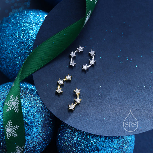 Tiny CZ Star Trio Stud Earrings in Sterling Silver, Silver or Gold, Three Star Earrings, Contellation Earrings, Celestial Jewellery