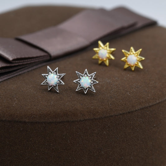 Starburst White Opal Stud Earrings in Sterling Silver, Silver or Gold, Star Opal Earrings, Stacking Earrings