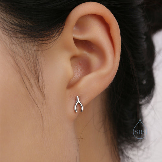 Tiny Wishbone Stud Earrings in Sterling Silver, Silver, Gold or Rose Gold, Small Good Luck Earrings, Geometric Stacking Earrings