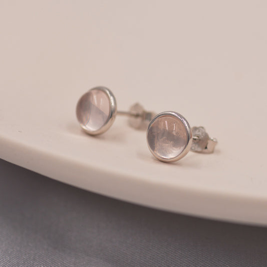 Sterling Silver Natural Quartz Crystal Stud Earrings, 6mm Rose Quartz Stud, Natural Semi-Precious Gemstones