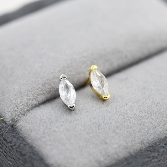 Sterling Silver Marquise CZ Stud Earrings, Simulated Diamond Stud, Minimalist Geometric Design, April Birthstone