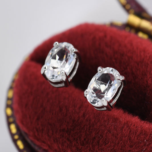 Genuine White Topaz Crystal Stud Earrings in Sterling Silver, Natural Topaz Quartz Stud Earrings, April Birthstone