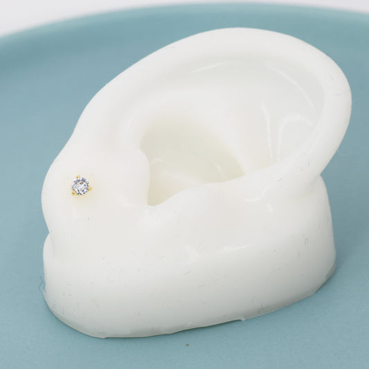 Tiny Three Prong Single CZ Stud Earrings in Sterling Silver, Silver or Gold, 3mm CZ, Diamond Stud, Classic Minimalist Design