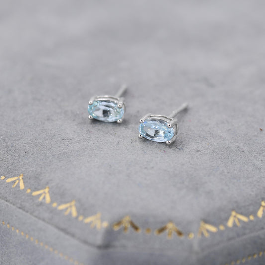 Tiny Genuine Topaz Crystal Stud Earrings in Sterling Silver, 3x5mm Natural Topaz Oval Crystal Earrings, March Birthstone