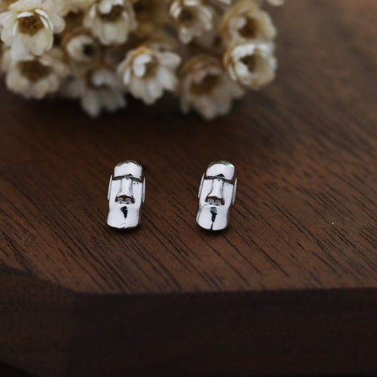 Sterling Silver Easter Island Statue Stud Earrings, Silver, Gold or Rose Gold, Moai Watcher Sculpture Stud Earrings