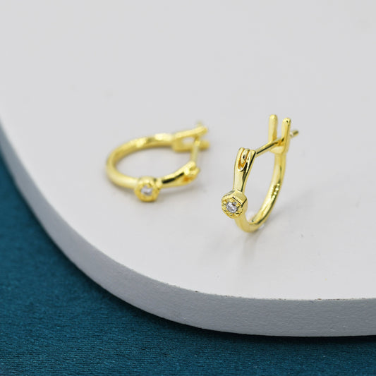 Creole Huggie Hoop Earrings with CZ Crystal in Sterling Silver, Gold Coated Sterling Silver, Creole Lever Earrings, Minimalist Geometric