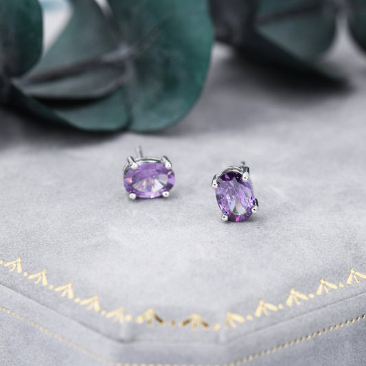 Amethyst Purple Oval CZ Stud Earrings in Sterling Silver, Available in Two Sizes, Oval Cut Crystal Earrings, February Birthstone