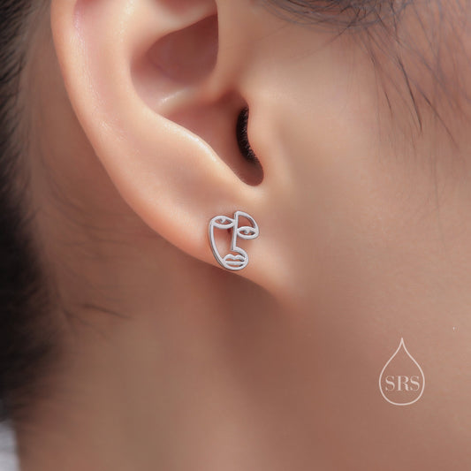 Art Inspired Asymmetric Face Stud Earrings in Sterling Silver, Silver, Gold or Rose Gold, Face Earrings