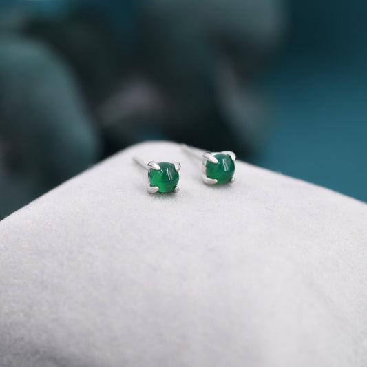 Sterling Silver Green Onyx Stud Earrings, 4mm Prong Set, 4 Prong, Genuine Onyx Gemstone Stud, Minimalist Style