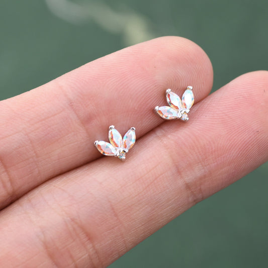 Mystic AB CZ Marquise Crown Stud Earrings in Sterling Silver, Silver or Gold, Colour Changing Aurora Cluster Earrings, CZ Cluster Earrings