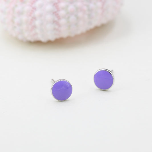 Enamel Purple Round Dot Stud Earrings in Sterling Silver with Hand Painted Enamel, Pastel Purple Stud,