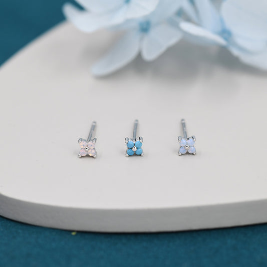 Tiny Blue Opal Flower Stud Earrings in Sterling Silver, Opal Forget-me-not Earrings - Silver Opal Flower Earrings - Petite Stud Earrings