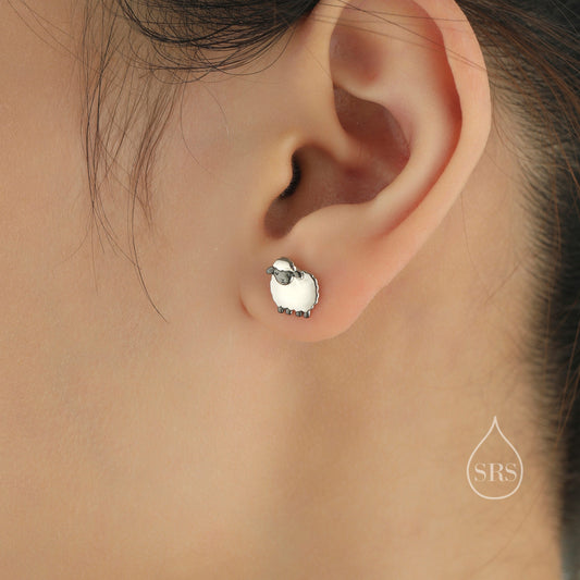 The Valais Blacknose Sheep Stud earrings in Sterling Silver, Fluffy Black Face Sheep Earrings, Nature Inspired, Pet Lover