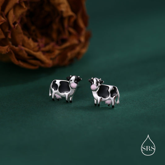 Sale!Small Pair of Dairy Cow Stud Earrings in Sterling Silver - Farm Animal Stud Earrings - Cute, Fun, Whimsical