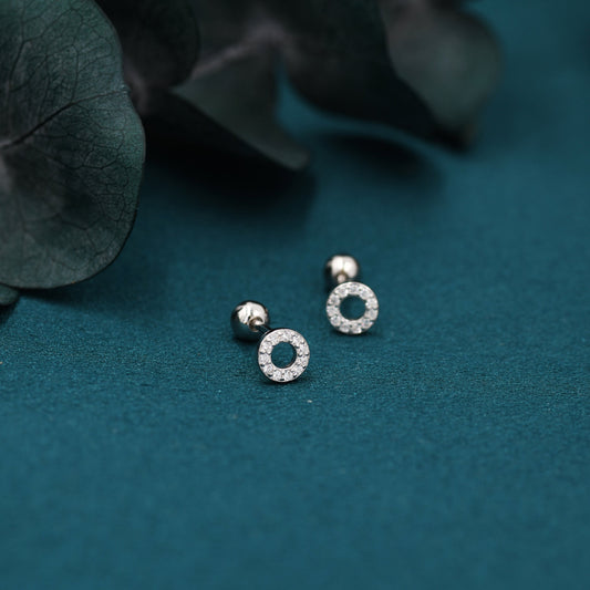 Tiny Open Circle Barbell Earrings in Sterling Silver, Silver or Gold, Screw Back Circle Earrings, Screwback Earrings