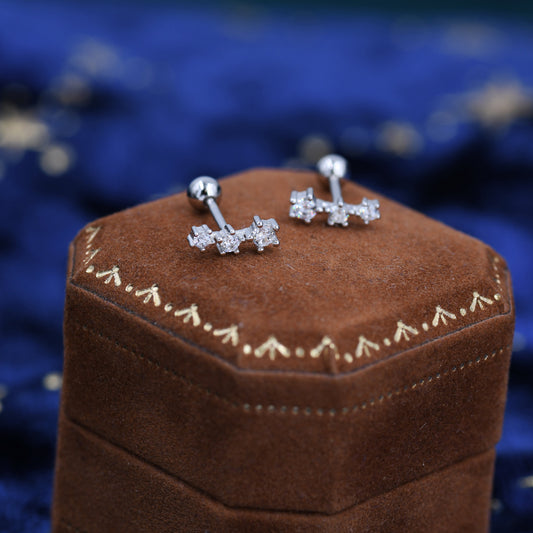 Extra Tiny CZ Trio Screw Back Earrings in Sterling Silver, Silver or Gold, Geometric Tiny Three Star CZ Barbell Earrings, Stacking Earrings