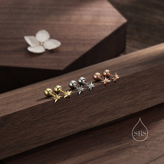 Tiny Starburst Screw Back Earrings in Sterling Silver, Silver or Gold or Rose Gold, Star Barbell Earrings, Sunburst Earrings