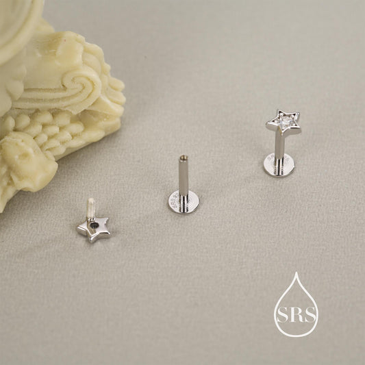 Sterling Silver CZ Star 18g Ball Back Screw Back Earrings