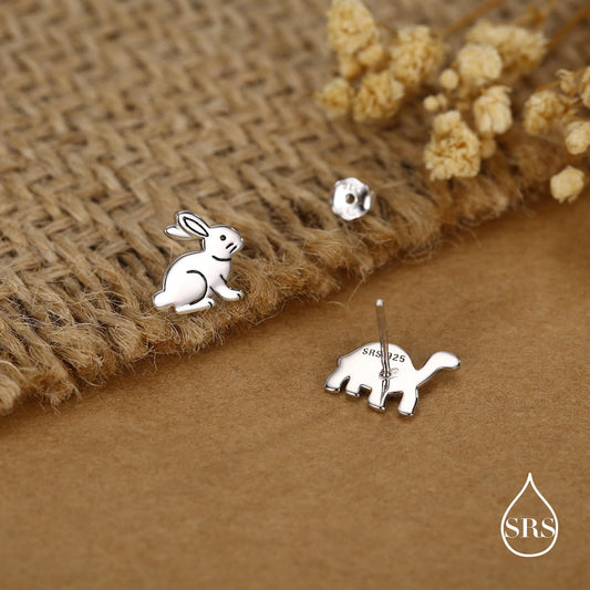 Sterling Silver Rabbit and Tortoise Mismatched Stud Earrings