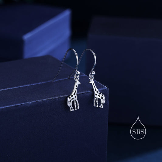 Giraffe Drop Hook Earrings in Sterling Silver, Silver or Gold or Rose Gold, Giraffe Dangle Earrings, Giraffe Drop Earrings