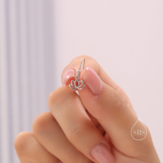 Sterling Silver Lotus Flower Drop Hook Earrings, Silver or Gold or Rose Gold, Water Lily Earrings, Lotus Earrings, Lotus Flower Earrings