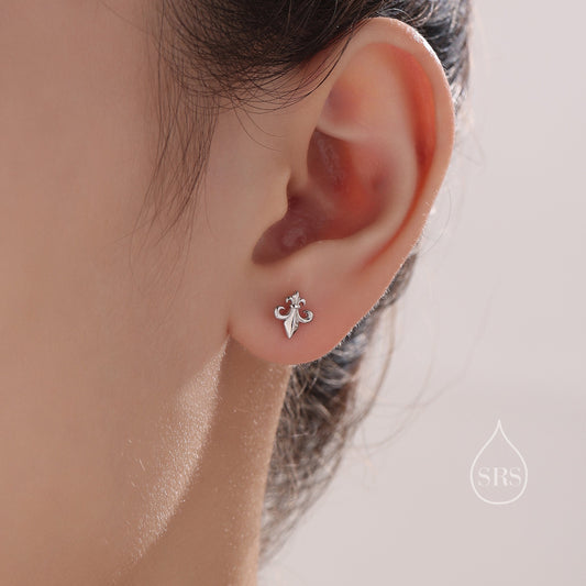 Sterling Silver Fleur De Lis Stud Earrings, Silver or Gold or Rose Gold, fleur-de-lis Earrings, Floral Earrings,