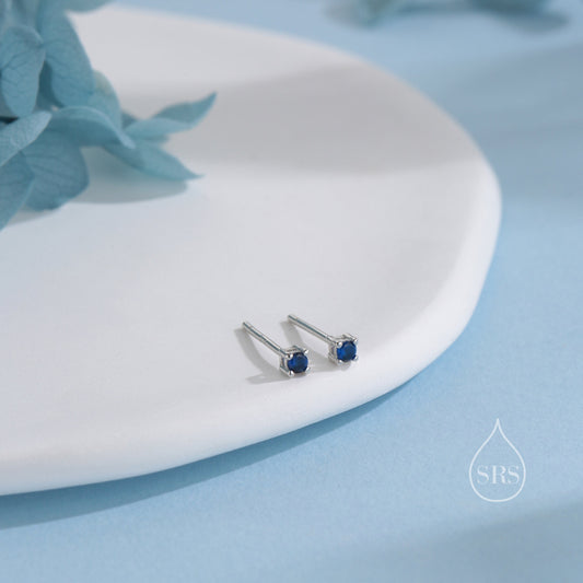 Extra Tiny 2mm Sapphire Blue CZ Stud Earrings in Sterling Silver, Silver or Gold, Barely Visible Stud Earrings, 2mm Blue Earrings