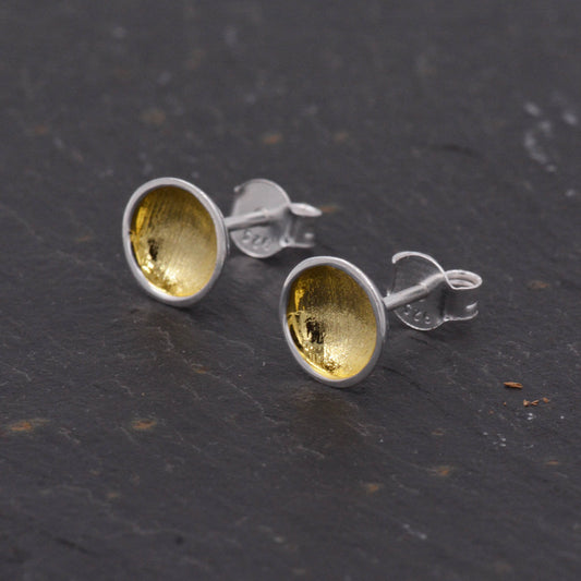 Heart of Gold Little Cup Stud Earrings in Sterling Silver - Geometric Circle Dot Minimalist Design - Plated with 18ct Gold