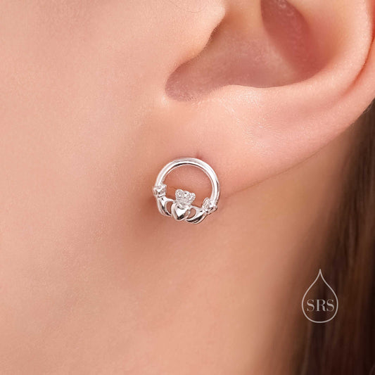 Sterling Silver Claddagh Stud Earrings Earrings, Silver or Gold or Rose Gold, Irish Claddagh Earrings