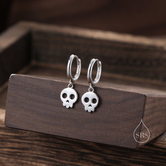 Cute Skull Huggie Hoop Earrings in Sterling Silver, Silver, Gold or Rose Gold, Silver Skull Hoops Earrings, Skull Earrings