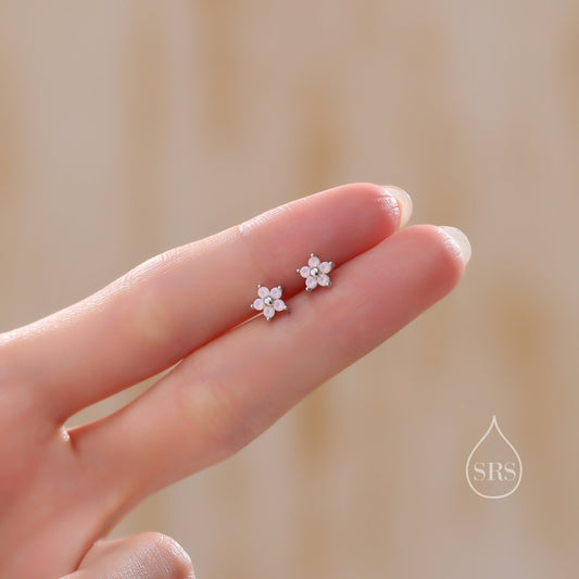 Tiny Opal Pink CZ Flower Stud Earrings in Sterling Silver, Silver or Gold, Extra Small Opal Pink Flower Earrings, Pink Flower Earrings