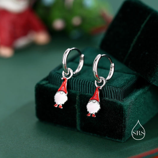 Tiny Gnome Huggie Hoop Earrings in Sterling Silver with Hand Painted Enamel, Winter Earrings, Snowman Earrings, Christmas Earrings