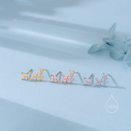 Asymmetric Hydrangea Flower Bouquet CZ Stud Earrings in Sterling Silver, Silver, Gold or Rose Gold, Mismatched Opal Pink Flower Earrings
