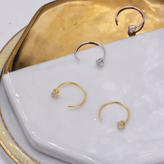 CZ Starburst Rhombus Huggie Hoop Earrings in Sterling Silver, Gold or Rose Gold, North Star Earrings, Sunburst Earrings, Celestial