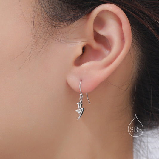 Tiny Bat Wing Drop Earrings in Sterling Silver, Silver or Gold or Rose Gold, Demon Wing Earrings, Devil Wing Earrings, Oxidised Silver
