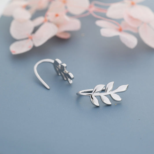 Olive Leaf Mini Crawler Earrings in Sterling Silver, Silver, Gold or Rose Gold, Olive Branch Climber Earrings, Nature Inspired Ear Climbers