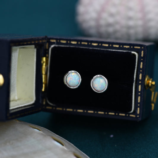 Sterling Silver Blue Opal White Opal Stone Crystal Stud Earrings. Round Minimalist Dot Geometric Design. bridesmaid jewellery.