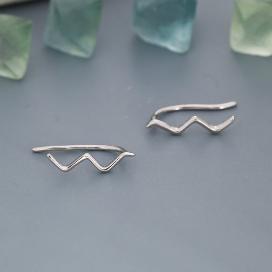 Zigzag Wave Crawler Earrings in Sterling Silver, Silver or Gold or Rose Gold, Minimalist Geometric, Ear Climbers