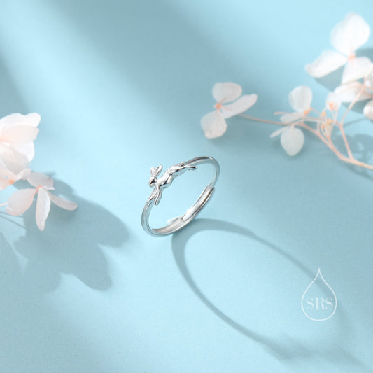 Sterling Silver Hare Ring, Adjustable Size Bunny Ring, Rabbit Ring, Dainty and Delicate