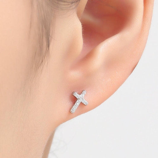 Very Tiny Cross Stud Earrings in Sterling Silver with CZ crystals, Crystal Pave Cross Earrings, Tiny Cross Stud
