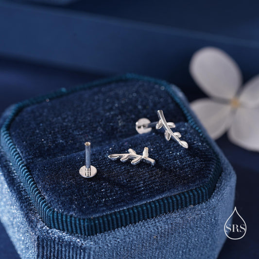 Sterling Silver Internally Threaded Tiny Leaf Flat Back / Screw Back/Stud Earrings in Sterling Silver, Tiny Leaf Earrings