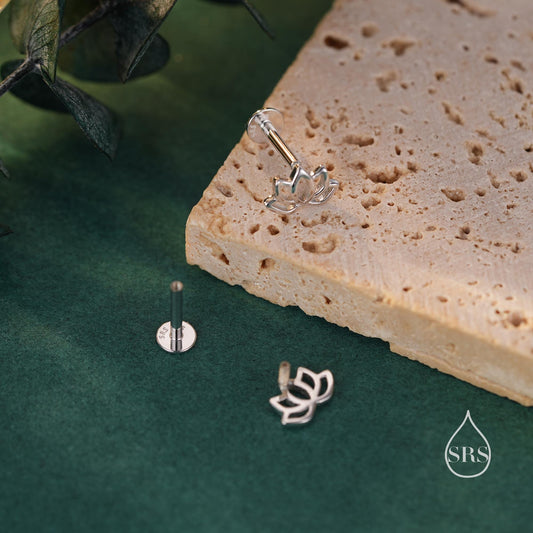 Lotus Flower Internally Threaded Flat Back/ Screw Back / Stud Earrings in Sterling Silver, Silver or Gold or Rose Gold, Nature Inspired