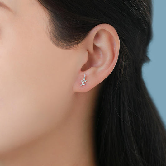 Little Fern Leaf Internally Threaded Flat Back / Screw Back / Stud Earrings in Sterling Silver - Natured Inspired Plant Earrings