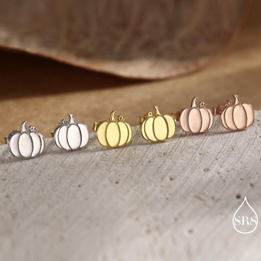 Pumpkin Internally Threaded Flat Back /Stud Earrings in Sterling Silver, Silver, Gold or Rose Gold, Tiny Pumpkin Earrings