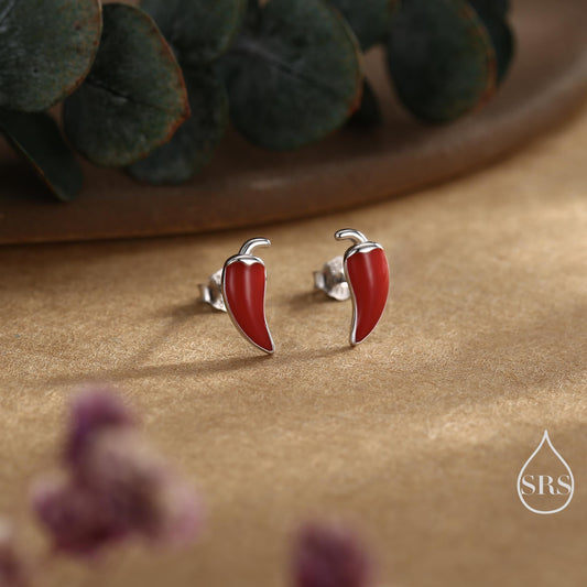 Enamel Chilli Pepper Stud Earrings in Sterling Silver, Green Chilli or Red Chilli Earrings, Chilli Pepper Earrings