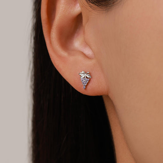 Sterling Silver Asymmetric Grape CZ Stud Earrings