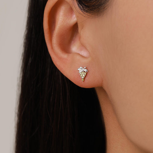 Sterling Silver Green Grape and Leaf CZ Stud Earrings