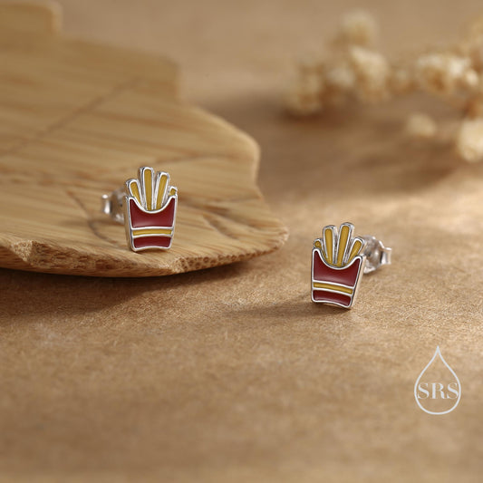 French Fries Sterling Silver Stud Earrings - Enamel Food Jewellery, Chips Earrings