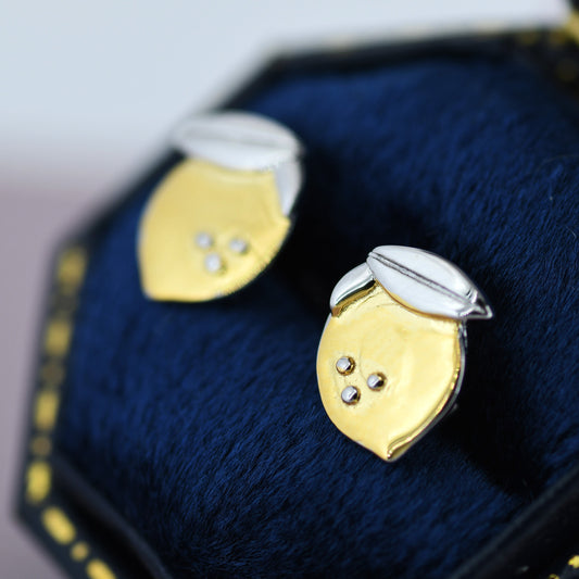 Lemon Stud Earrings in Sterling Silver, Silver and 14ct Yellow Gold Two Tone Earrings, Fruit Earrings, Summer Earrings